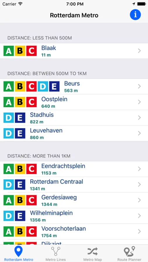 Это программа предназначена для тех, кто в Роттердам хочет пользоваться Метро в качестве транспортного средства. С помощью программы легко найти ближайшую станцию Метро. Программа определит расстояние до ближайших станций Метро по отношению к точке нахождения и покажет их вам на карте и в виде списка.