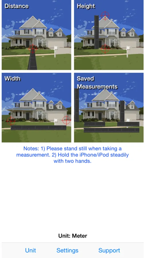 Three type of measurements can be done with Measure Tape - height and width of an object, and a distance between an object and you.