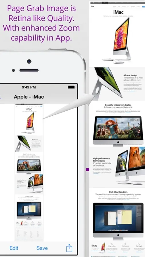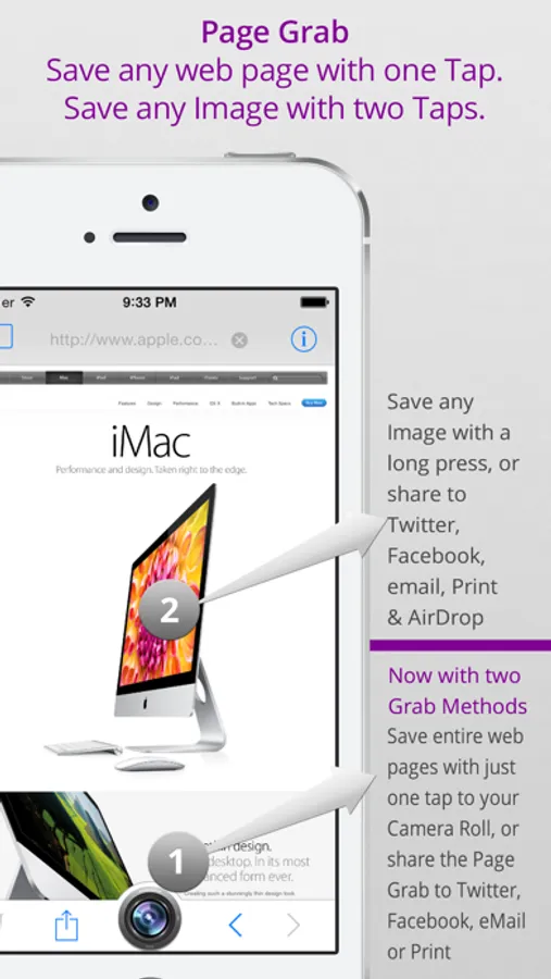 • Share Page Grabs to Facebook, Twitter, Flickr, Email or Print and AirDrop.