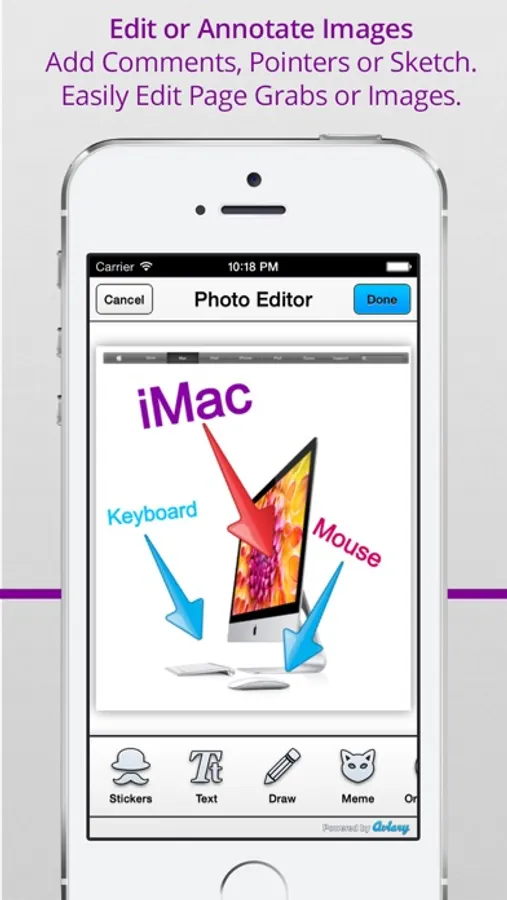 • Edit Page Grabs or Images with the Image Editor Powered by Aviary.