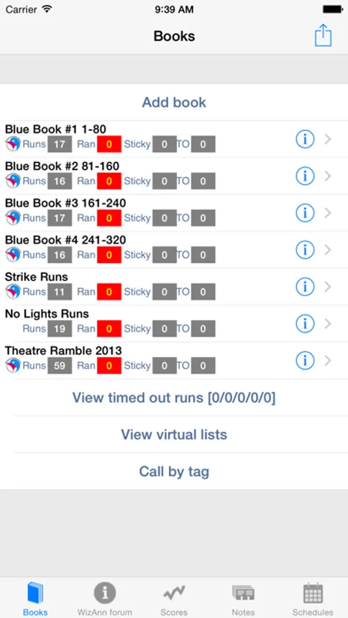 WizAnn Books app, this app has been designed to help with calling over runs, with the app you can create and share your own runs it will track your progress of calling over.