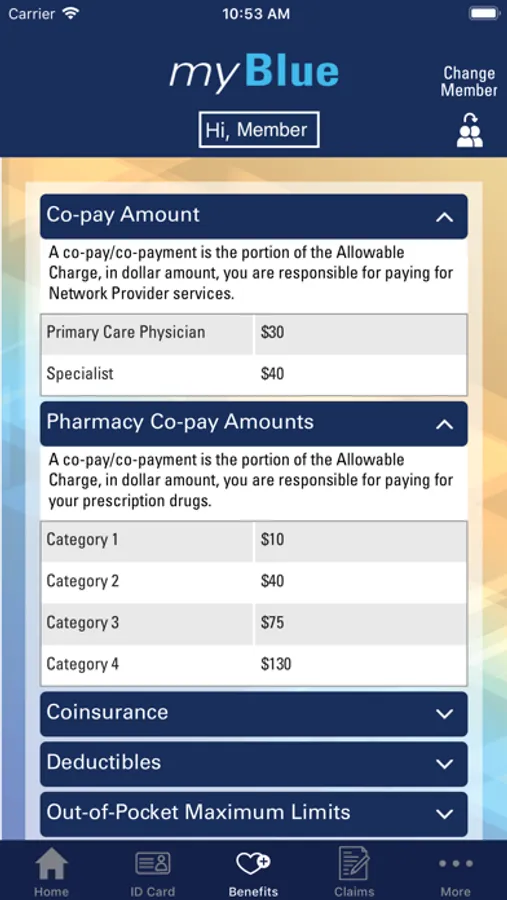 •View benefits “at a glance” including provider and prescription drug co-pays, deductibles and coinsurance.