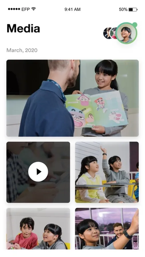 - Media: See your child’s activity at EF school through photos and videos