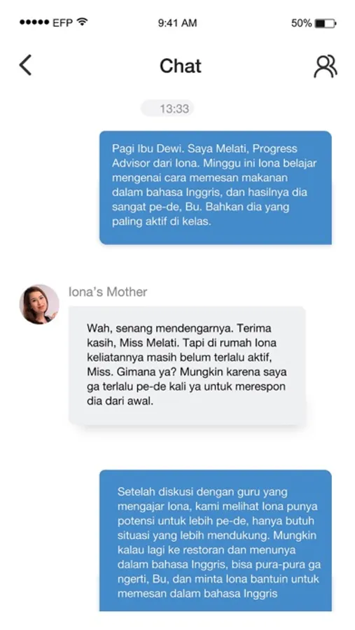 EF Parents is a product for parents of EF students aged 3-18 years old. It provides parents with their child’s learning experience and progress at EF Schools, such as: