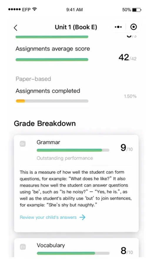 Track your child’s study progress with EF Parents App.