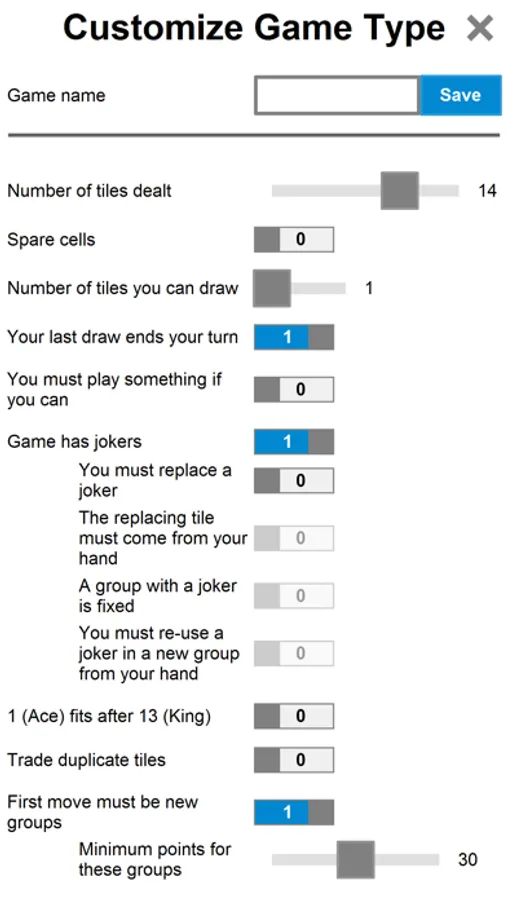 You can create your own game types by combining the available game rule options. Pup Rummy PLUS supports all known game variations and a few additional rules, not found in the original game: