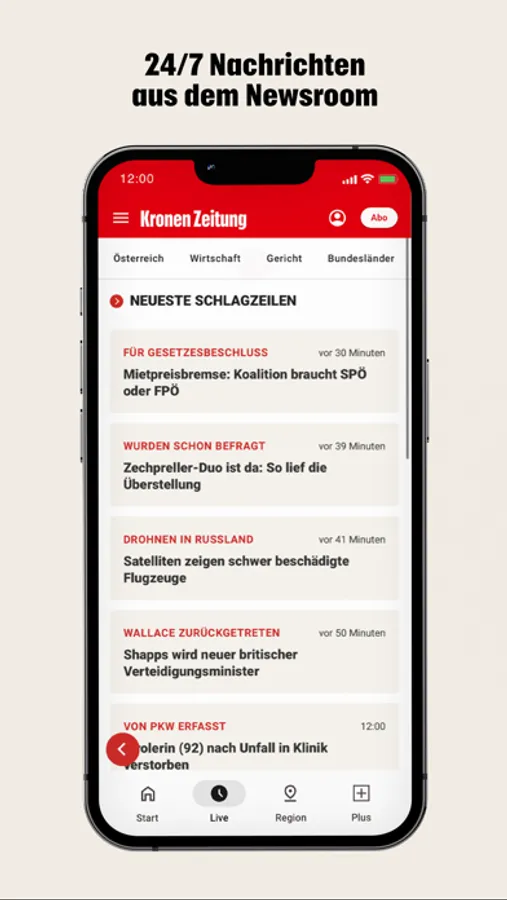 24/7 Live-Nachrichten aus dem Newsroom der Kronen Zeitung mit der schnellen App von Krone