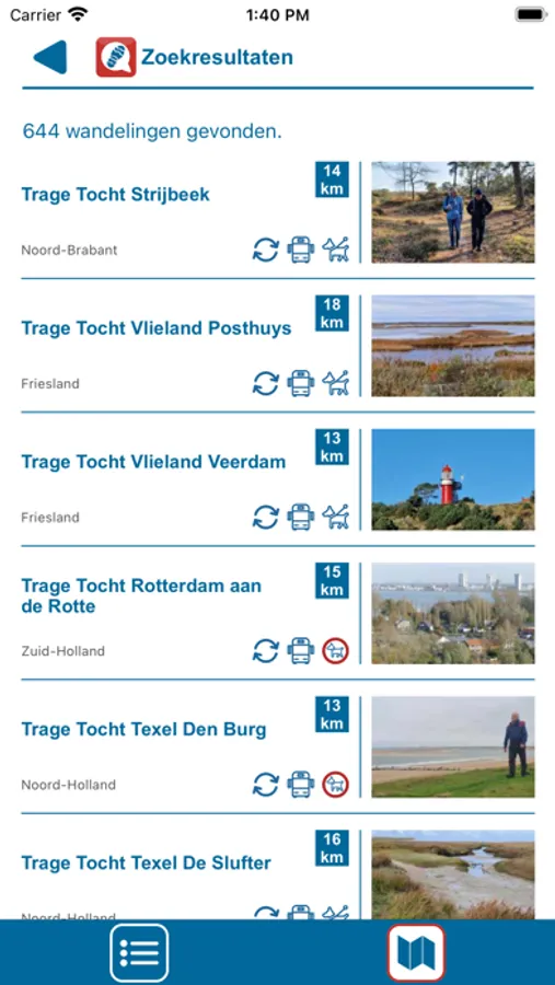 Wandelzoekpagina biedt met de app WandelZapp meer dan 2500 wandelingen verspreid over heel Nederland. Er is een grote variatie: van kort tot lang, van natuur tot stad, van bos tot strand, van kort tot lang. Continu worden nieuwe wandelingen toegevoegd en bestaande wandelingen bijgewerkt.