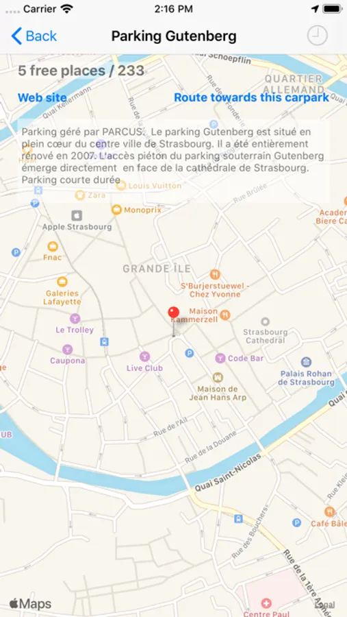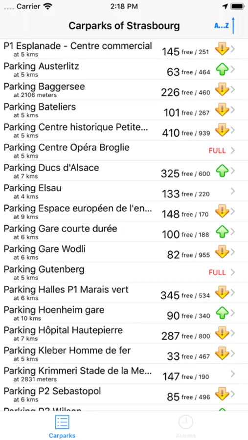 Lists of carparks of Strasbourg, their occupation and their position on the card.
