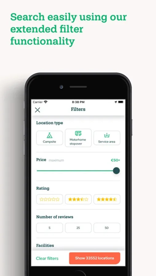 With Campercontact, you will always find a motorhome site that suits you. Reliable information at your fingertips will give you a careless and unforgettable holiday. Base your choice on one of the 600.000+ reviews written by other motorhome owners and get a good idea of each motorhome site. Would you like to use the app offline? Not a problem! You are only a few taps away.