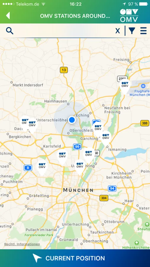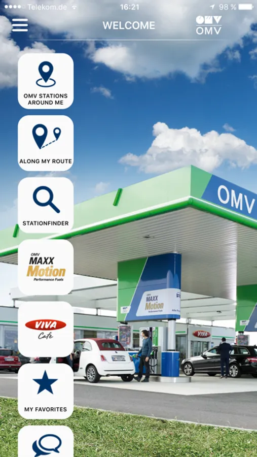 - the nearest OMV filling station in the current or desired location