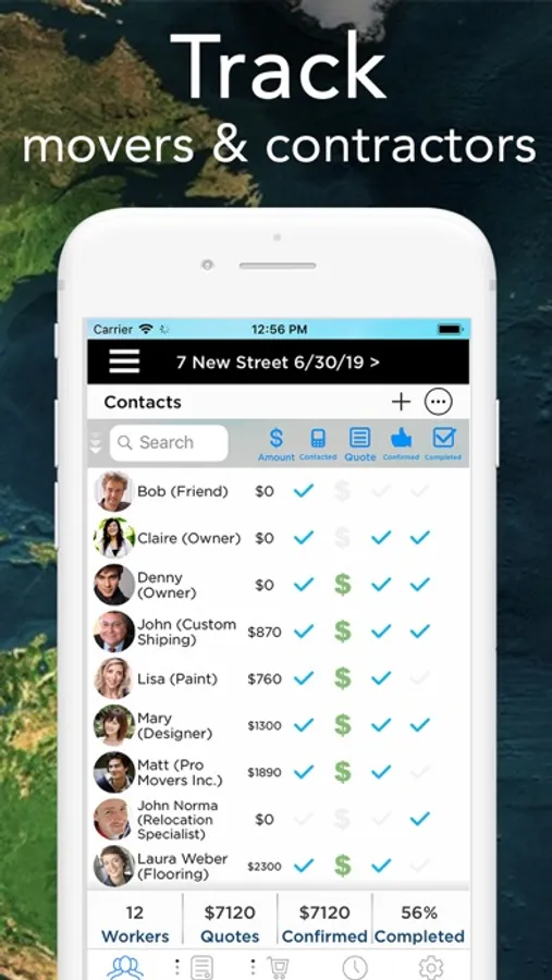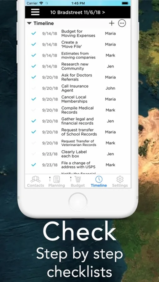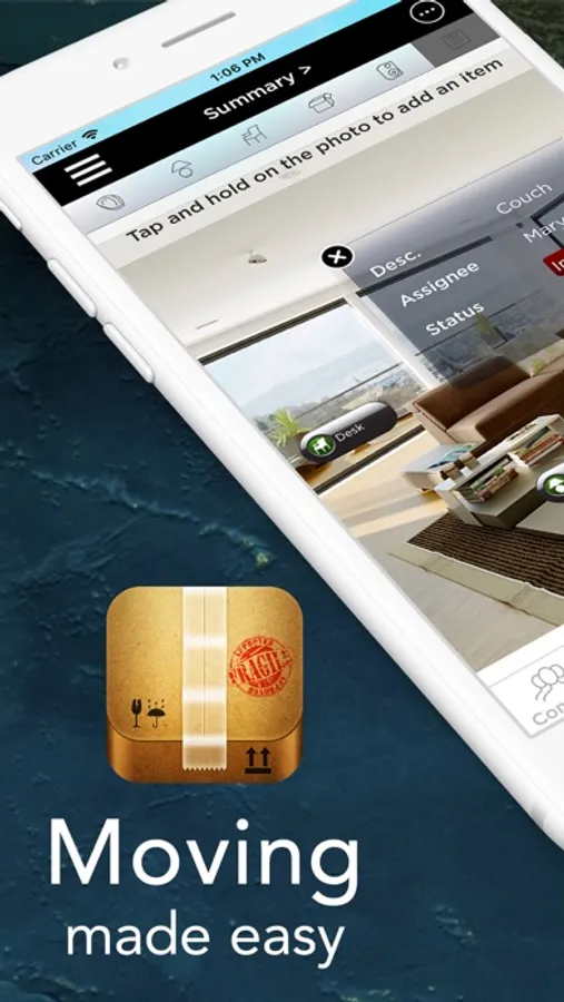 Pro Moving Planner is much more than your average Moving Checklist! It is a highly collaborative tool allowing you to manage all the activities, visualize your new place, and keep your budget in check as you begin moving. You can easily add furniture, boxes or identify repairs directly on the pictures of your new place.