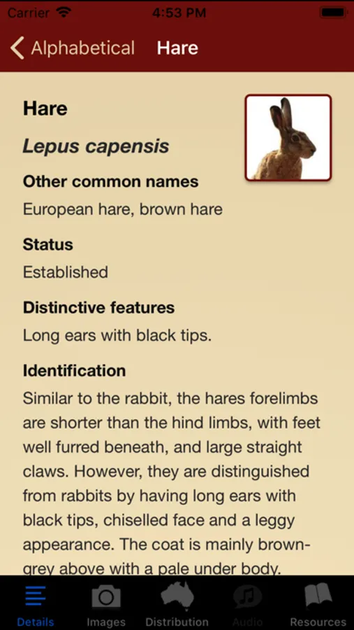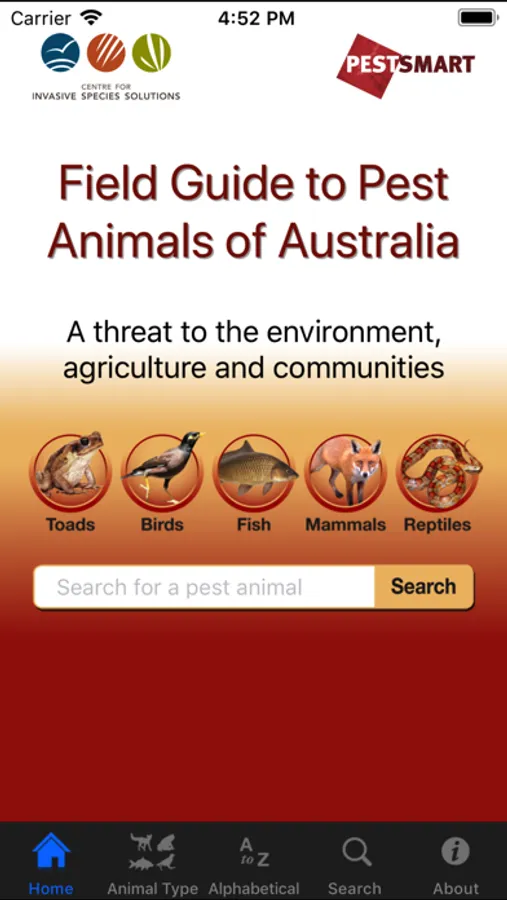 Australia has around 80 introduced vertebrate pest species costing at least $1 billion annually in economic, environmental and social impacts. This app contains pest information, distribution maps, photos, animal calls, control information and resource links for 53 pest species. Future versions of this app will contain more resources, updated information, and additional species.