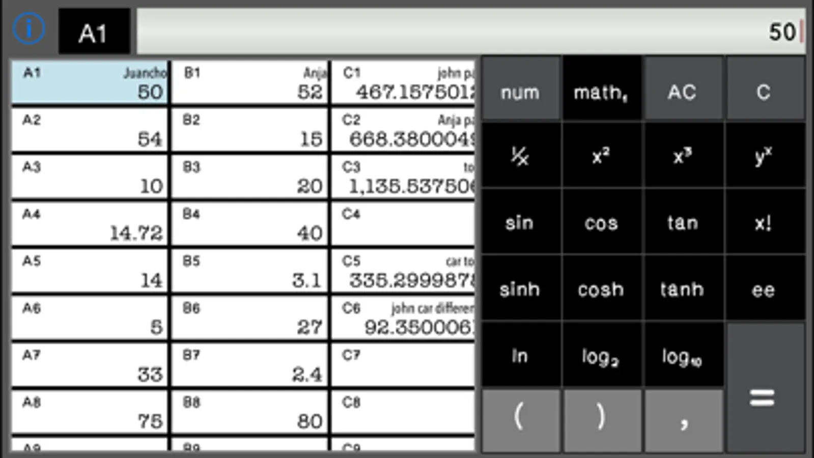 The SpreadSheet with a Calculator input mode. As easy to use as your desk calculator with all the power of a SpreadSheet.