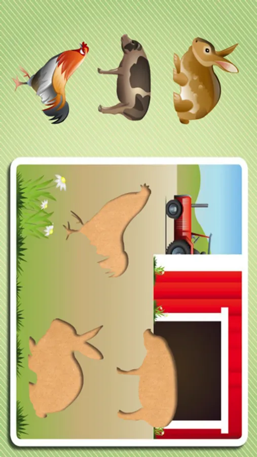 In Learn with Puzzles there are 17 different puzzles to choose from. When the child places a puzzle piece in its correct position the special sound of that piece is played (e.g. a car sound). When a puzzle is completed a funny cheering noise is played.