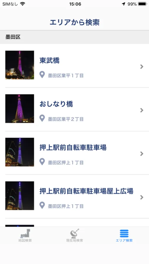 ※位置情報サービス(GPS)がオフの場合、現在地を「東京スカイツリー」として扱います。