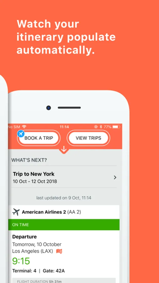 • Obtain real-time trip notifications including cancellations, delays, gate assignment, baggage claim