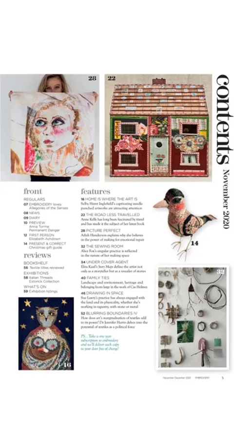 Our mission is to bring you the best of embroidery and textiles, talking to makers and stitchers who share their passion for embellishing the surface with us - giving our readers an unique insight into all facets of this sumptuous craft.