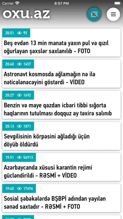 Her gün on minlerle insan bizim Azerbaycanda iqtisadiyyat, siyaset, sosial, medeniyyet, idman ve şou-biznes sahelerinde baş vermiş hadiseleri eks etdiren xeberlerimizi mehz Oxu.Az-dan oxuyur.