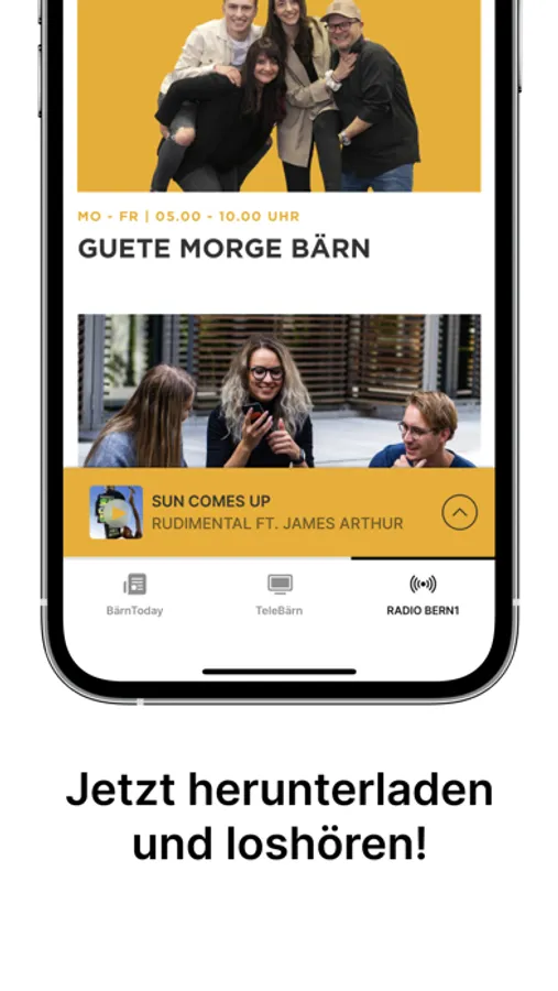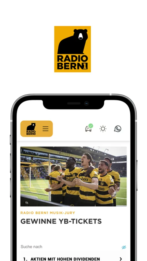 Du hörst uns weltweit mit der RADIO BERN1-App, oder auch über radiobern1.ch.