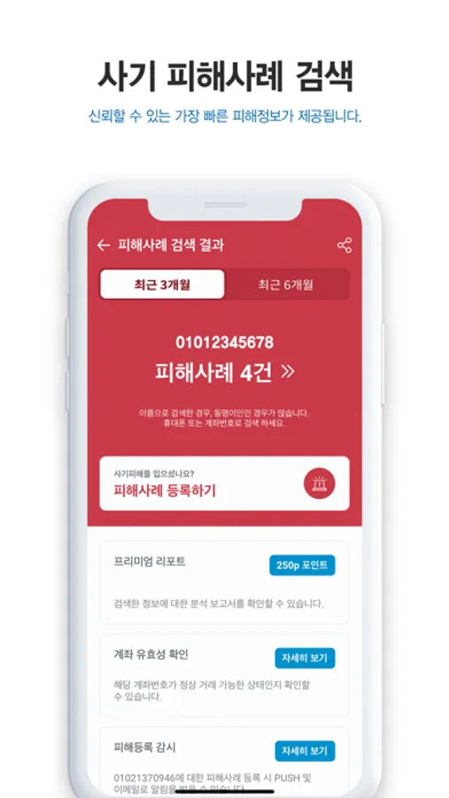 최근 6개월 동안 1건 이상 등록된 피해 정보를 검색할 수 있습니다.