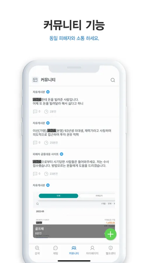 1. 연락처, 계좌정보, 아이디 등을 검색하여 금융사기 피해를 방지할 수 있습니다.
