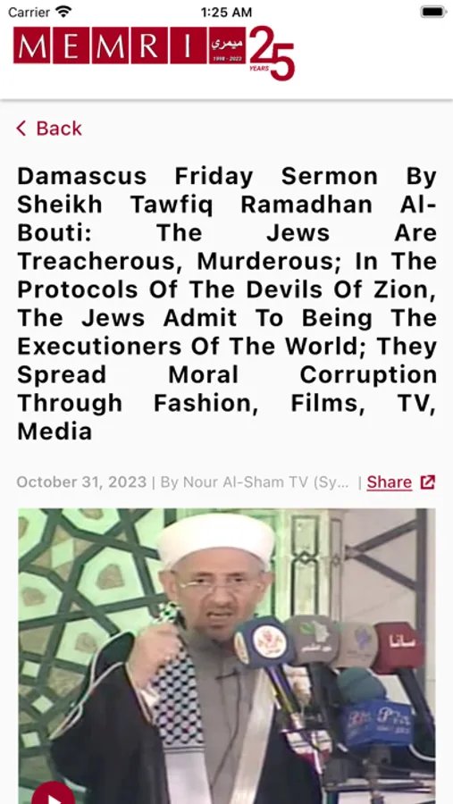 For anyone who wants to hear (and see) the real narratives of the Mideast as told by the regional opinion makers. Suggestion: It does not allow the user to watch videos horizontally. This is unfortunate, because the video screen is much smaller in portrait mode. This should be easy to fix for the developer. It is worth doing.