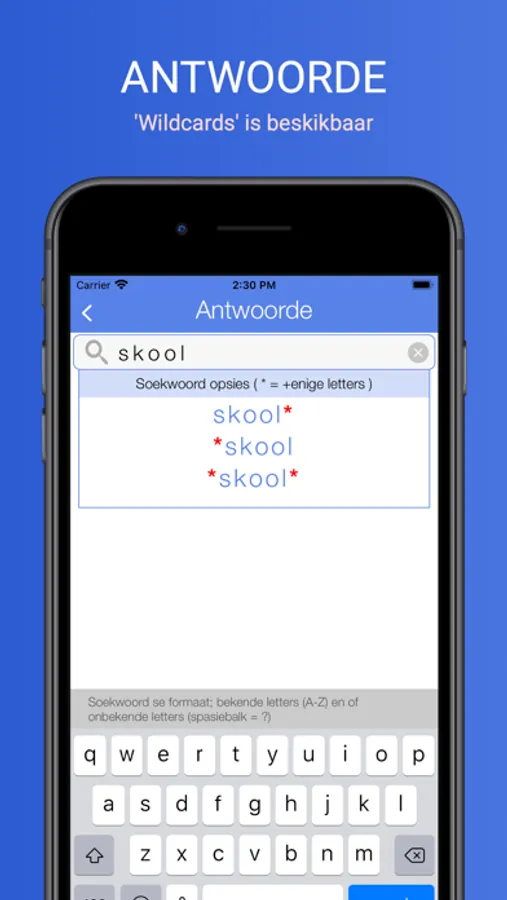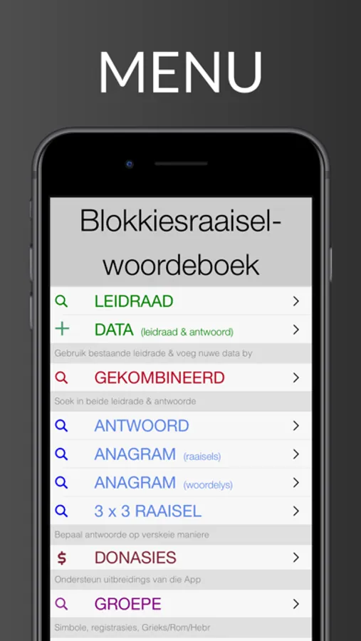 Introducing 'Blokkiesraaisel Woordeboek' - the quickest, easiest way to find answers to Afrikaans crossword puzzles on your iPhone or iPad.