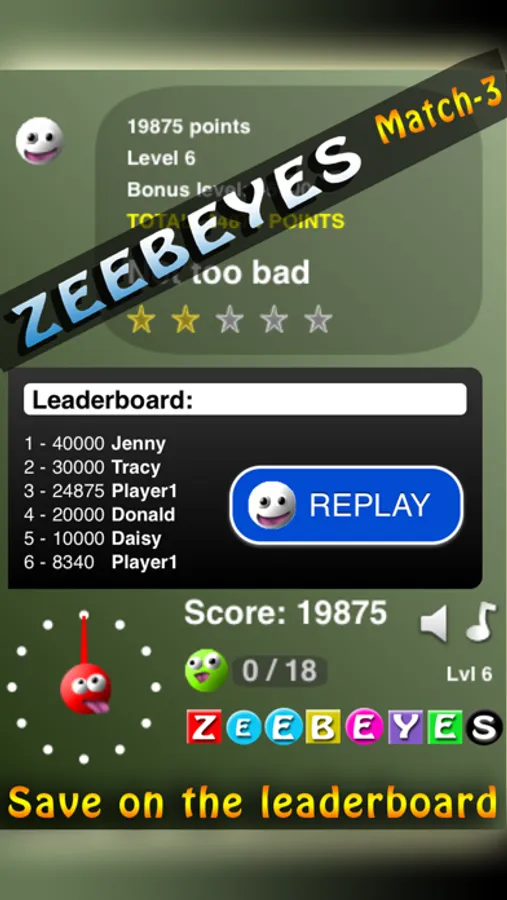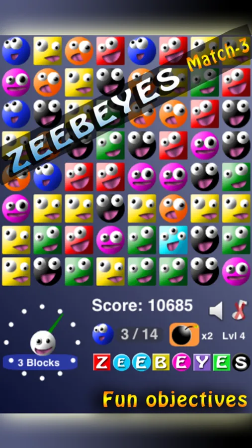 Bored by match3 games, Try ZeebEyes match-3. funny graphics, funny sounds.