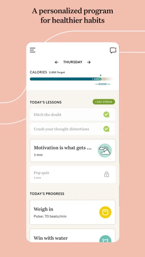A sustainable weight loss program to help you change the habits behind your health through lessons & science-backed tools.