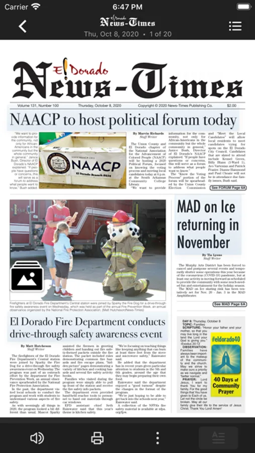With the El Dorado News-Times app, you can view every section of the daily newspaper in a digital replica presentation. You can easily read the day's paper, share your favorite articles and even access previous editions.