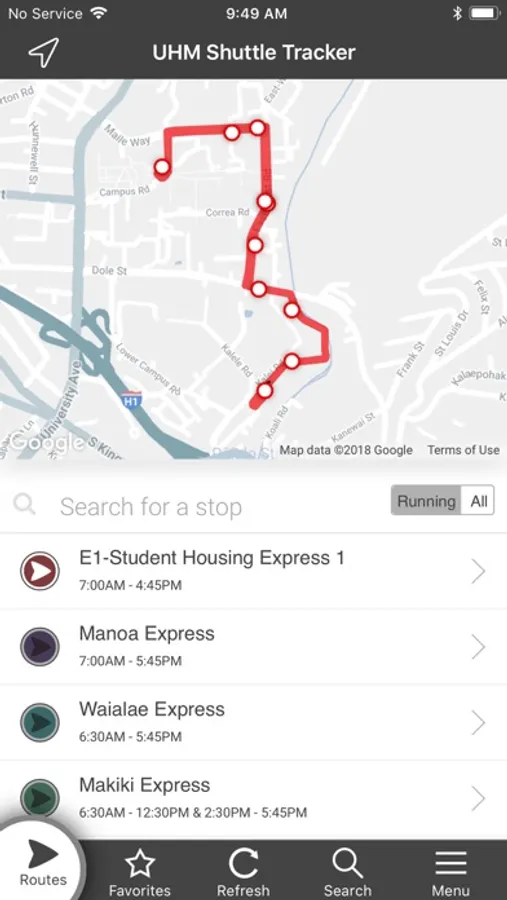 The UHM Shuttle app shows bus riders where the bus is and when it will pick them up around UHM campus. It provides live location of buses, arrival predictions, and other important bus route information.
