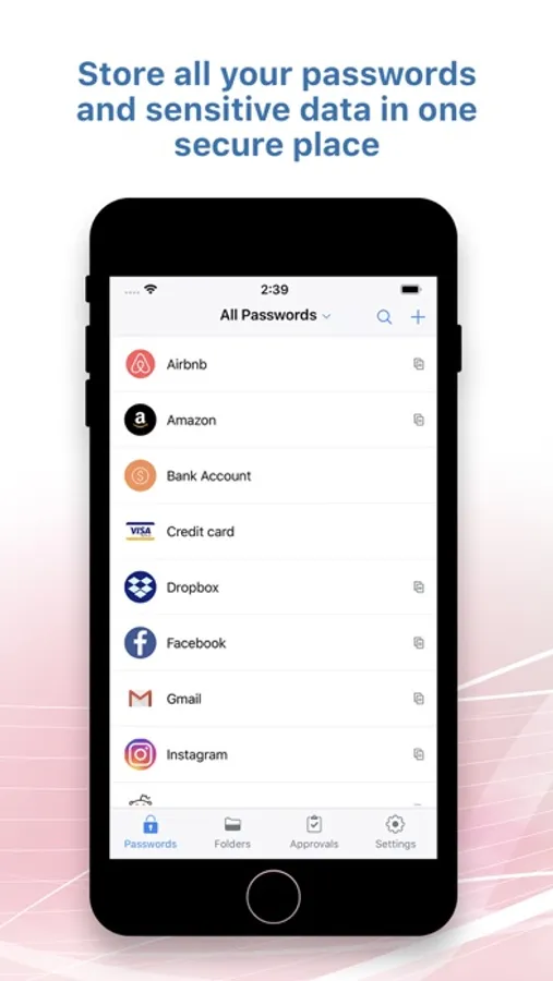 • Organize your passwords into folders and manage them efficiently