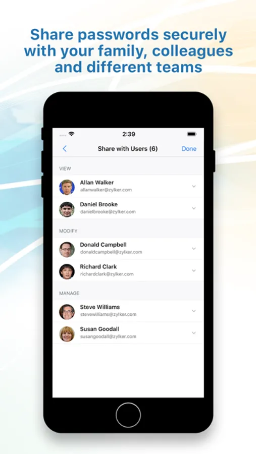 • Safely share passwords with multiple users and teams across your organization