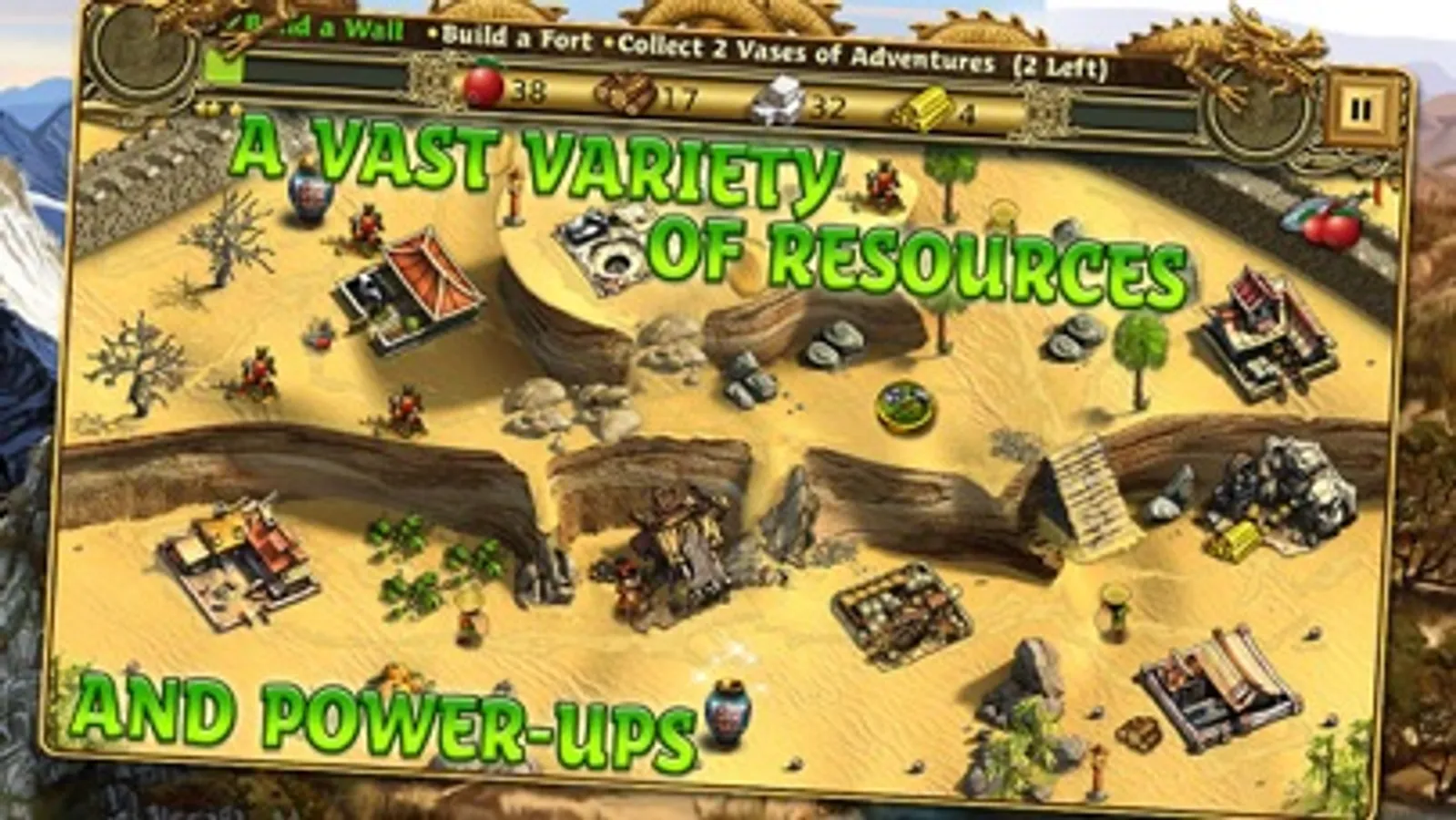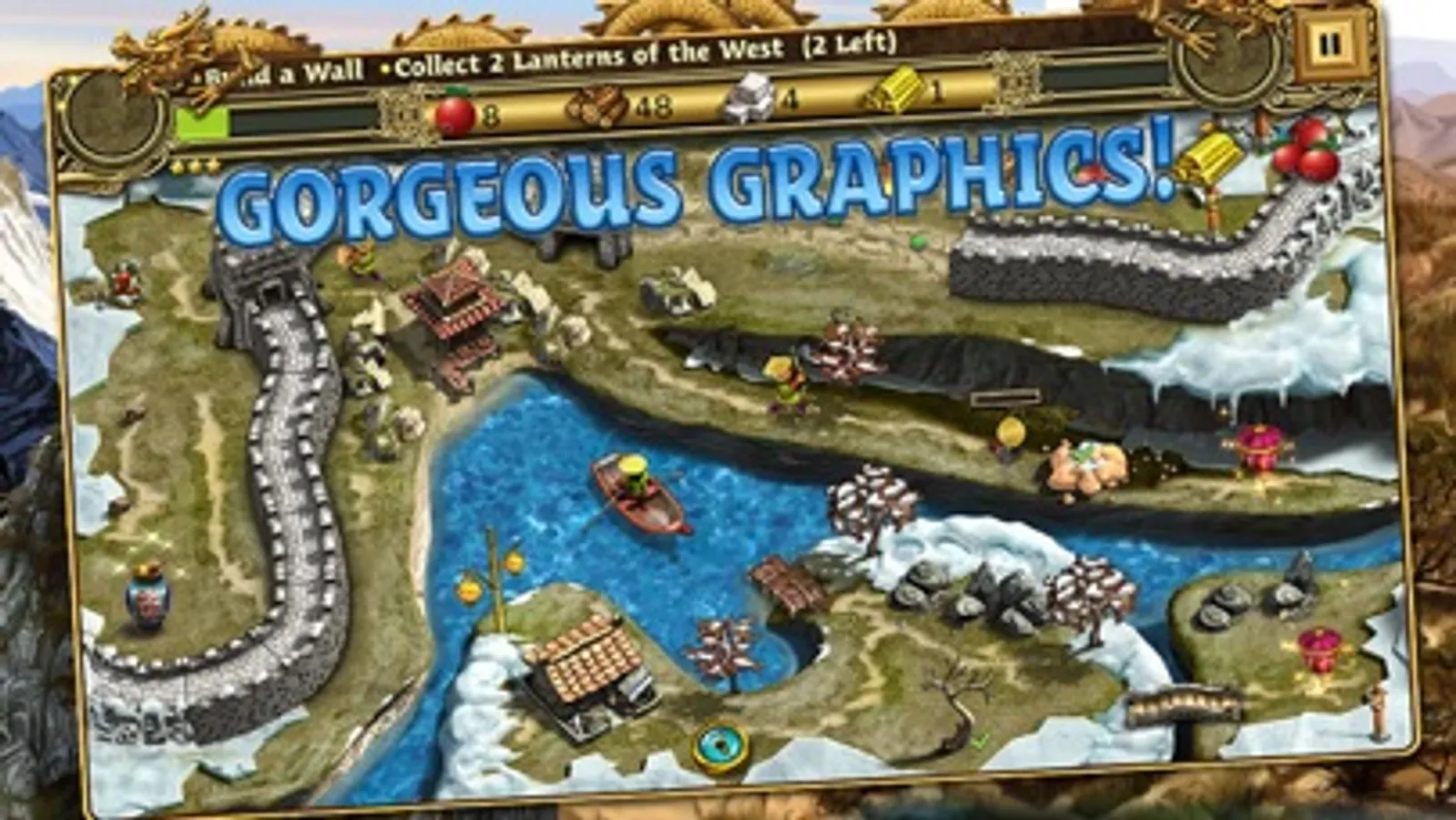 The Chinese Empire is in grave danger as the Nomads from the North threaten the wealth and prosperity of its lands. Kong Baotu, a smart and resourceful man, accepts the challenge to achieve the impossible. He commits himself to building the Great Wall that will protect China from the warlike barbarians. In return, he asks for permission to marry the Emperor's beautiful daughter, Fan Tanrui. Join Kong in his epic adventure! Help him save the Empire and marry Fan. Your journey will take you to the farthest reaches of China, through the emerald-green hills and treacherous rocky cliffs. In more than 40 levels, you will conquer the snowy mountain-peaks and cross the withering deserts. You will gather food and lumber, mine stone and iron, survive hurricanes and thunderstorms, all for the noble goal of completing the greatest building in the history of mankind – The Great Wall of China.