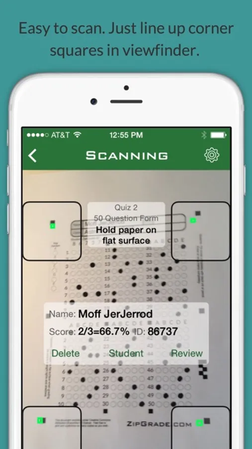 Teachers can grade multiple choice tests, quizzes, and assessments instantly in the classroom by using their iPhone or iPad's camera as a scanner. It is the most cost effective, fastest, and most accurate way to grade tests in the classroom or where ever you are.