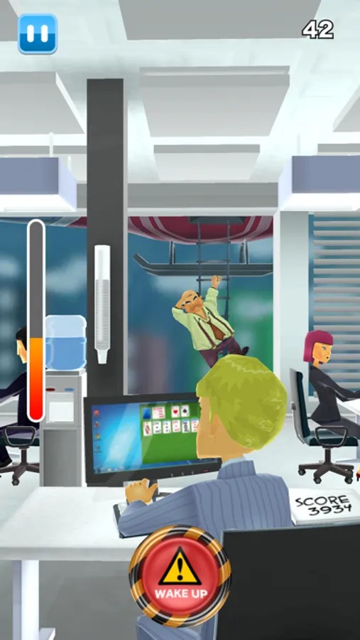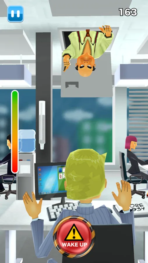 If you do this at your real job you'll get fired, but in the game sleep as much as you can until you get caught by the boss!
