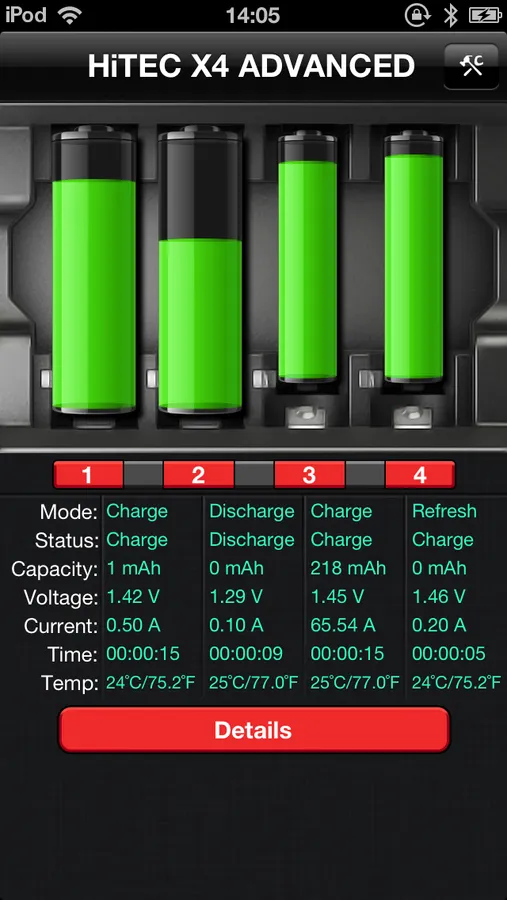 Hitec Smart Charger seamlessly integrates advancements in portable computing with the X4 ADVANCED Battery Charger;bringing real-time monitoring to your Apple® devices such as the iPod Touch, iPhone and iPad. With the Bluetooth communication, the HiTEC Smart Charger can display your charger’s