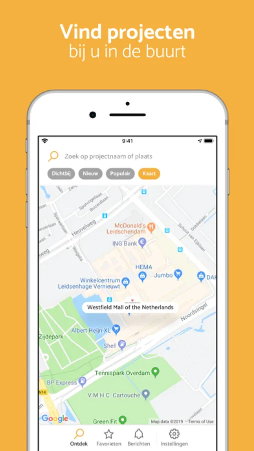 In de BouwApp kun je zoeken naar bouwprojecten en bouwbedrijven waar jij geïnteresseerd in bent. Dit kan op een kaart, maar ook door het invoeren van zoekcriteria, bijvoorbeeld zoeken op naam, plaats of bouwbedrijf.