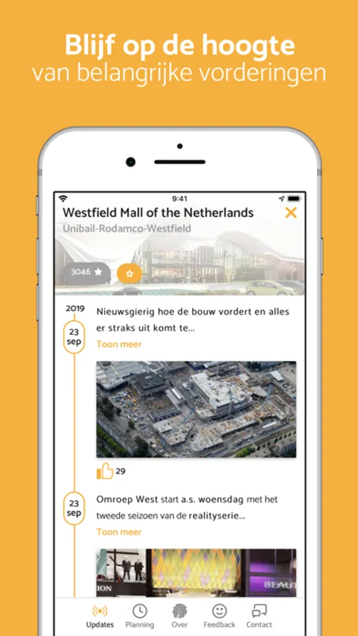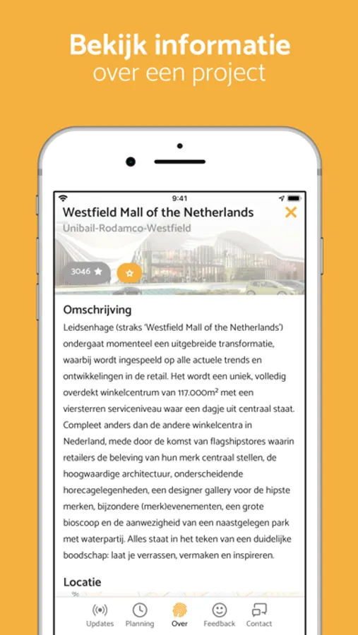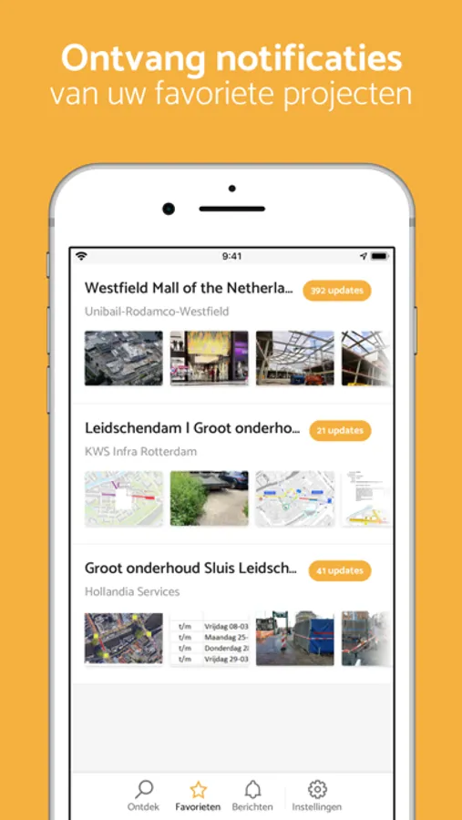Met de BouwApp kunt u bouw- en infraprojecten toevoegen aan uw favorieten. U kunt deze projecten blijven volgen zonder dat u elke keer de App hoeft op te starten. U ontvangt bij elke nieuwe update een signaal. Zo bent u als eerste op de hoogte van de laatste ontwikkelingen.