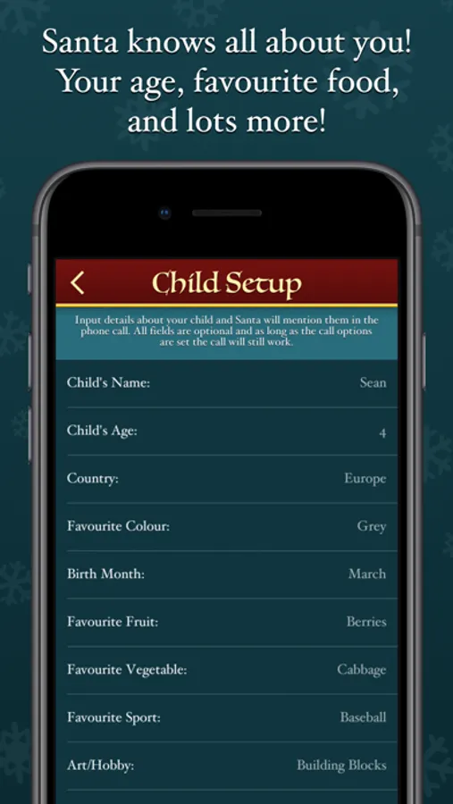 CALL SANTA - Talk to Santa! Give him a call or have him call you! On Christmas Eve you can even talk to Santa while he's on his sleigh! *Parents can use the Santa Call functionality to keep children well behaved! REQUIRES PARENTAL SETUP*
