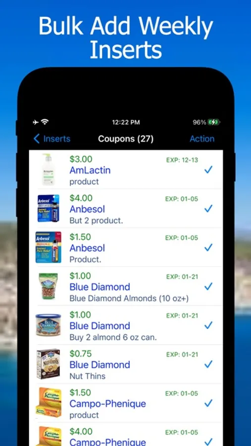 Instead of the labor intensive task of manually entering all the coupon information into your iDevice, let "Coupon Binder" perform the tedious job for you! Simply use your iDevice's camera (auto-focus camera required [1]) to scan the coupon barcode and "Coupon Binder" will automatically load all the relevant information from an online Database.[2] Want more? "Coupon Binder" saves you even more time by allowing you to import a Sunday-paper-insert's worth of coupons all at once. Just pick the week you want from your favorite coupon publisher such as Red Plum, Smart Source, and Procter & Gamble and "Coupon Binder" will add all the coupons from that insert for you.[3]