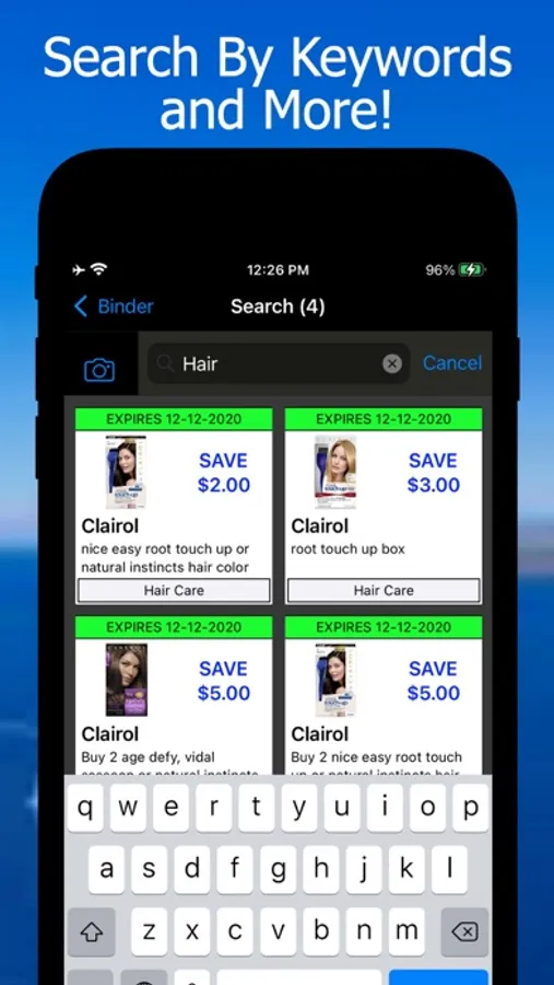 With a massive collection of coupons, trying to find specific coupon becomes next to impossible. Let "Coupon Binder" help you with that too! You can easily search your virtual binder by typing in simple keywords for your favorite brand (ex. "Garnier"), coupon description (ex. "shampoo"), or category (ex. "Hair"). Typing in keywords is still too much work for you? Use "Coupon Decoder" to scan your favorite product's UPC barcode at the store and it will "auto-magically" search and match your binder for potential savings.[4] How easy is that!