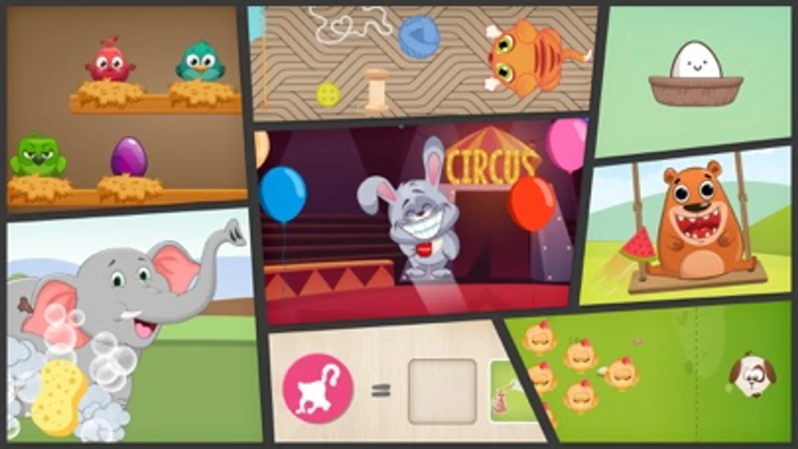 This jigsaw like puzzle game helps your kids develop matching, tactile and fine motor skills while playing 100+ different Animals Puzzles - horse, cow, pig, sheep, duck, chicken, donkey, dog, cat and rabbit, bee, butterfly, mouse, peacock, monkey, owl, fish, dolphin, penguin, frog. It is a fun and educational learning game for preschool children and toddlers including those with autism.