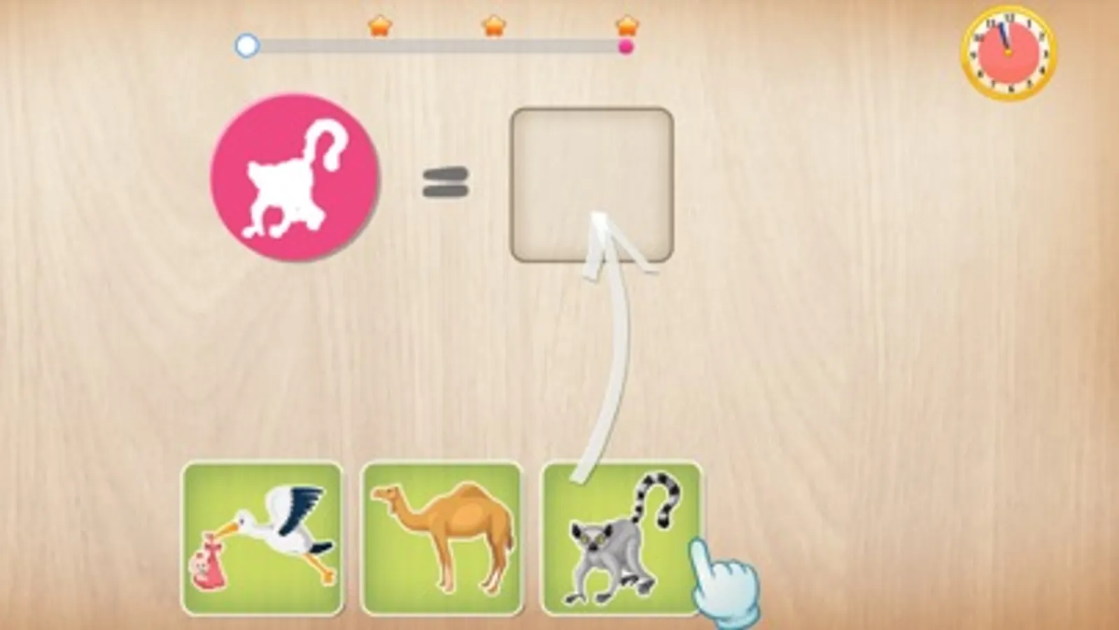 The theme of this Puzzle is ‘Animals’, check our other apps for more themes like 'Food', 'Kitchen', 'Furniture', 'Cars' and 'Tools'