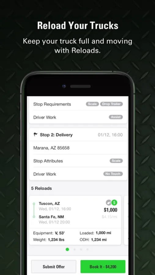 • Make offers on freight or instantly book loads for qualifying carriers