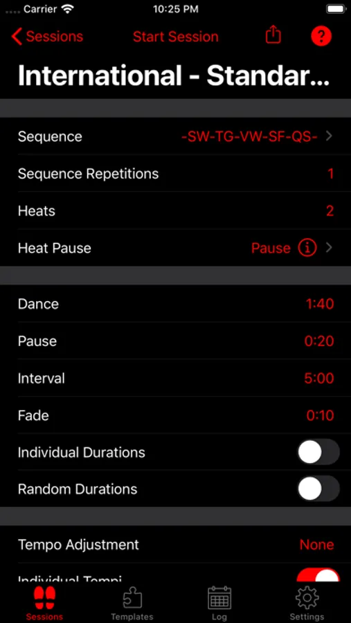 - 6 pre-defined sessions (Standard WDSF/WDC, Latin WDSF/WDC, Smooth and Rhythm)