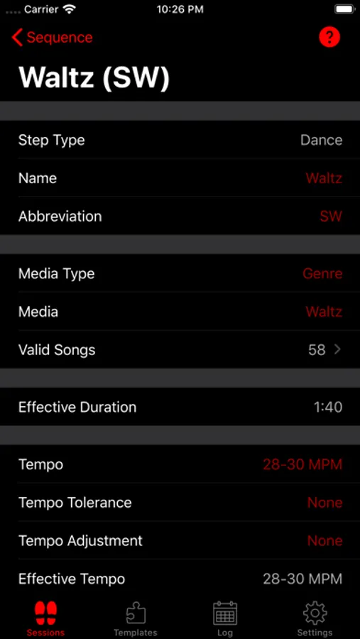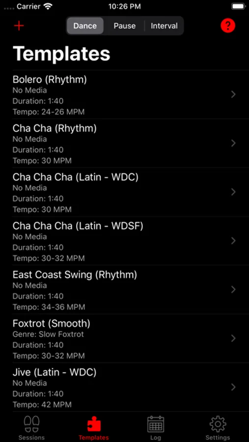 - 31 pre-defined templates (29 dances, 1 generic pause and 1 generic interval)