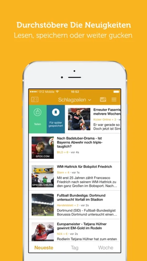 Die neuesten Sportnachrichten für alle Sportarten - Bundesliga, Erste Liga, Formel 1, Tennis und vieles mehr. Alles mit einer Live-Anzeigetafel und zusammengefasst in einem Newsfeed ohne Informationsüberlastung!