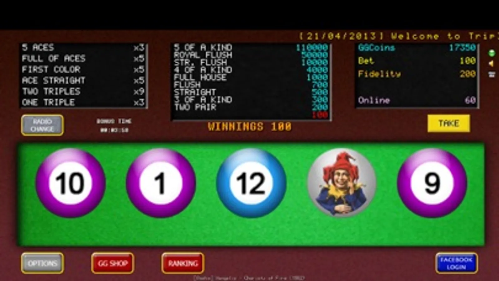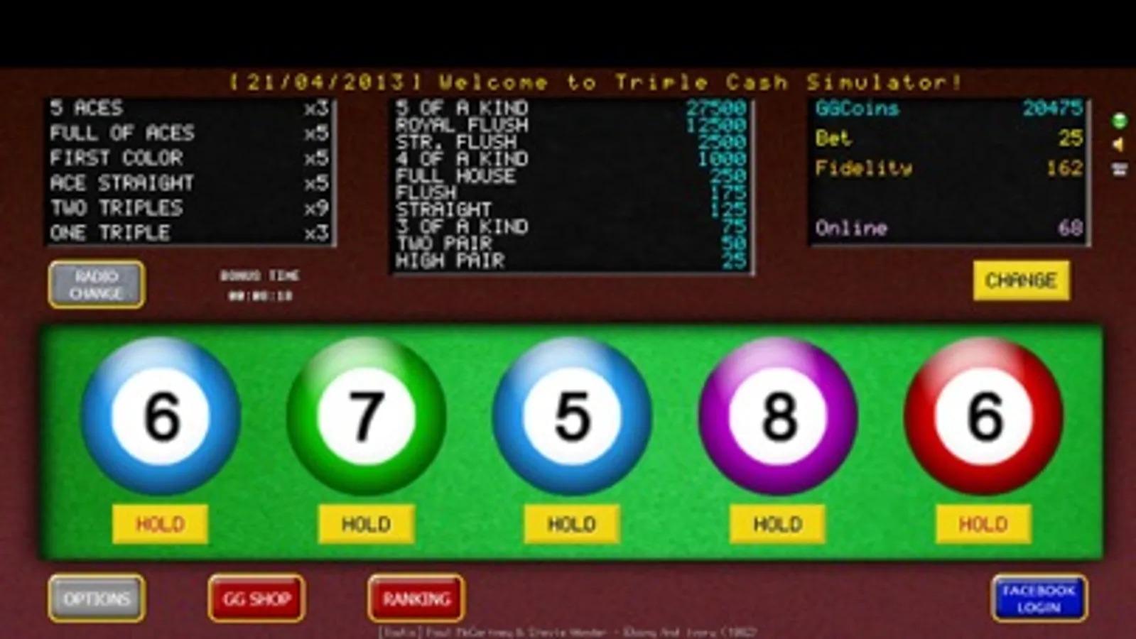 Triple Cash is an high fidelity simulation of the most played videopoker from 1990 to 2004.